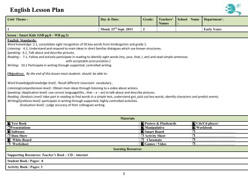 Related : English Lesson Plan Year 1 : Pupils will be able to pronounce words and speak confidently with the correct stress, rhythm and intonation.learning standards :.