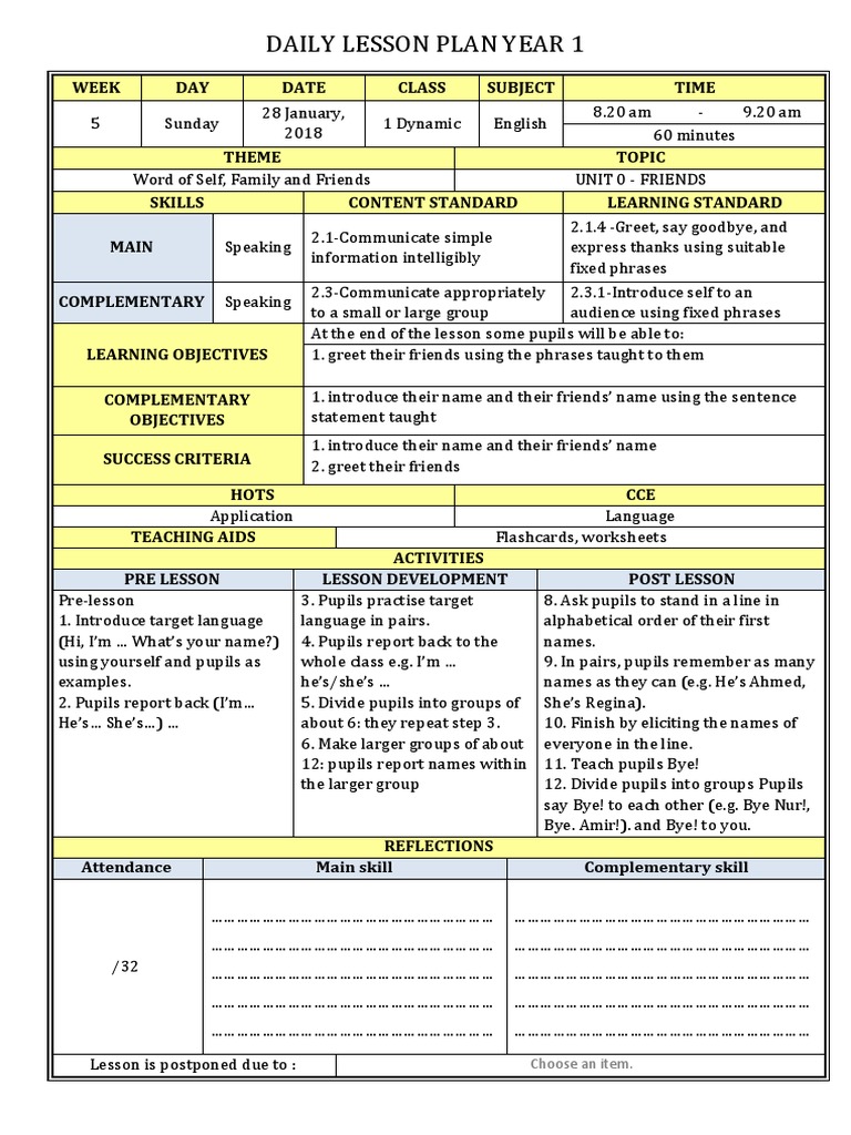 Doc Daily Lesson Plan English Language Year 1 Rozaidi Yusof Academia Edu from 0.academia-photos.com Below you will find various lesson plans to help guide your instruction. Fun esl lesson plans on many topics. English kssr year 1 guide book by adam hamdan 89311 views. Each lesson plan has sufficient material to support at least 45 minutes of direct teaching. 1.1.3 able to listen to, say aloud and recite rhymes or sing songs with guidanceobjectives : A collection of 1268 free pdf lesson plans, with answers and teachers' notes where needed, for all levels, including exam lessons for esl/efl teachers. On this site are loads of ideas, but how do you actually put them together to form a lesson? Teachers may need to supplement the activities provided with additional simpler or more complex tasks if they have a mixed ability class.